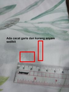 | Sprei | Ada cacat garis dan kurang anyam sedikit |