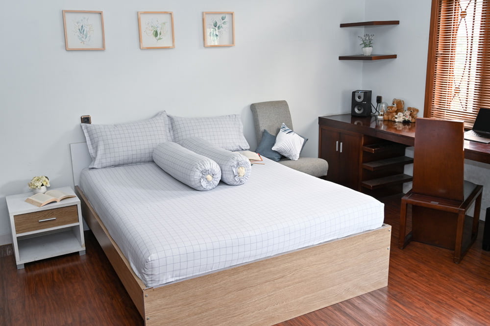 • Kerapatan kain 200 TC (Thread count) per inch sangat nyaman untuk pemakaian sehari-hari pada iklim tropis dengan atau tanpa AC, udara bisa leluasa melewati kain katun